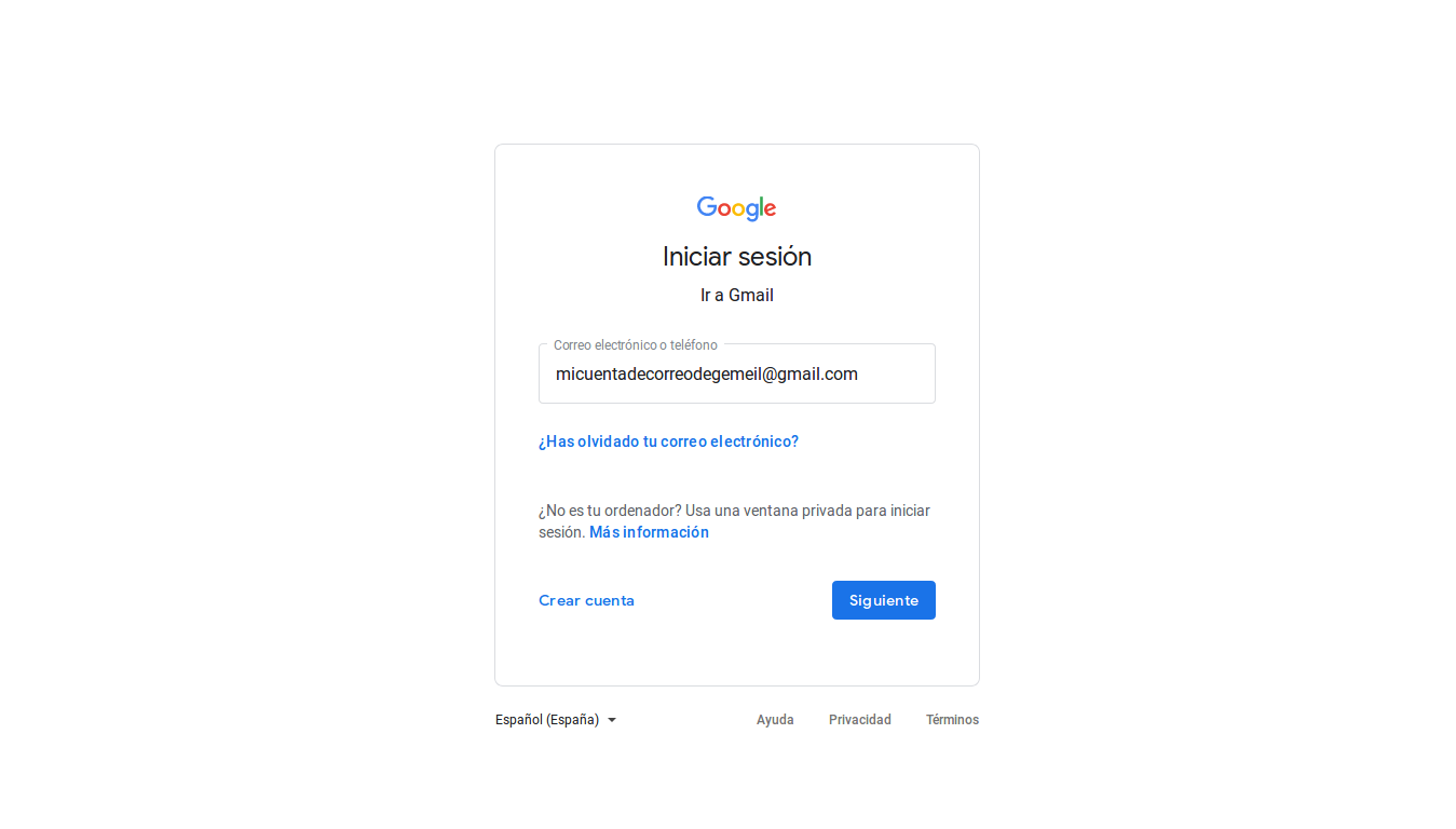 - Primero, abre un navegador y accede a gmail.com con tus datos personales de acceso: