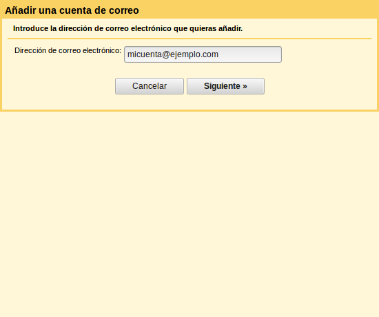 Introduce los campos que te solicitan a continuación y pulsa Añadir cuenta: